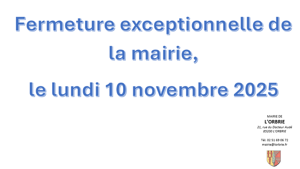 21, rue du Docteur Audé 85200 • L’Orbrie Tél. 02 51 69 06 72 Fax. 02 51 69 70 63 mairie.lorbrie@wanadoo.fr